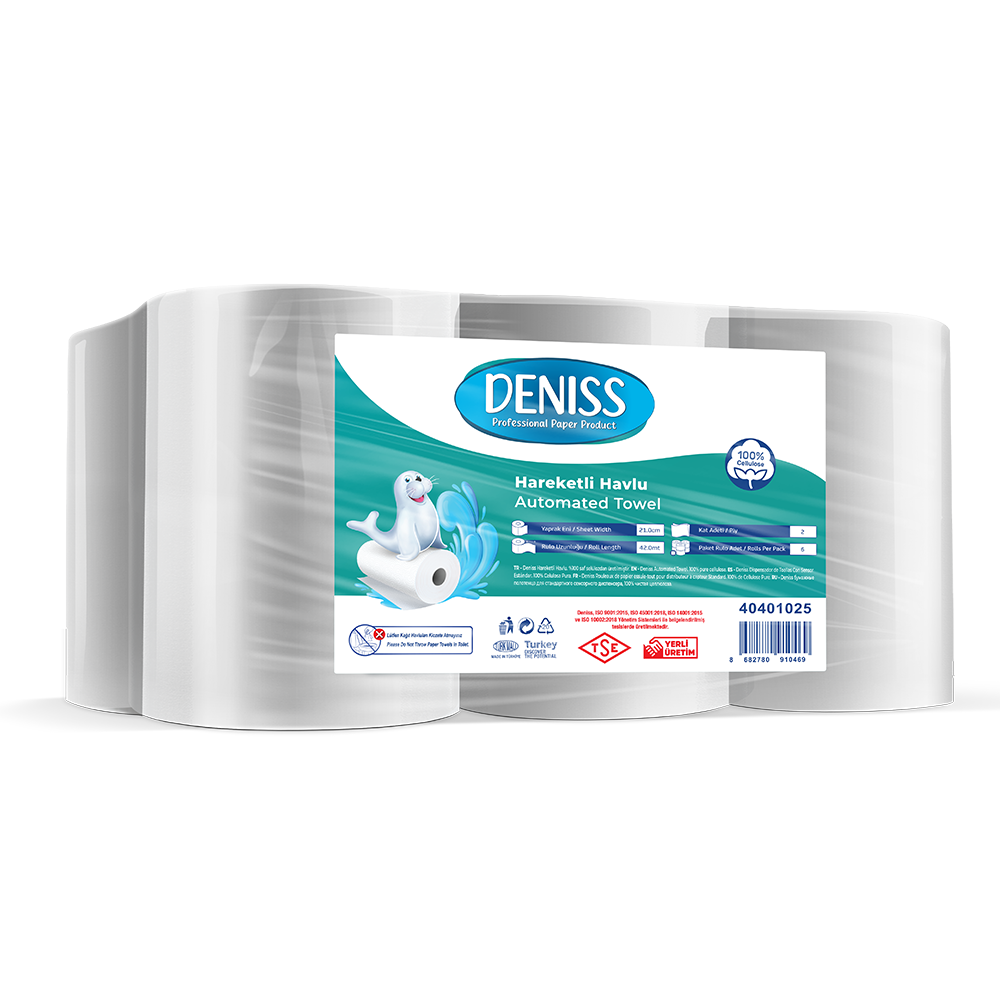 Deniss Kağıt Havlu, yüksek emicilik ve dayanıklılık sunar. Dayanıklı yapısı sayesinde kolayca dağılmaz.Özel dokusu ekstra yumuşaktır ve hassas yüzeylerde bile %100 güvenle kullanabilirsiniz.